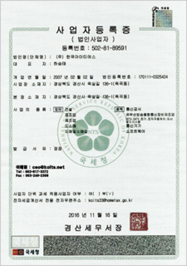 직접생산확인증명서(폐쇄회로 텔레비젼시스템)