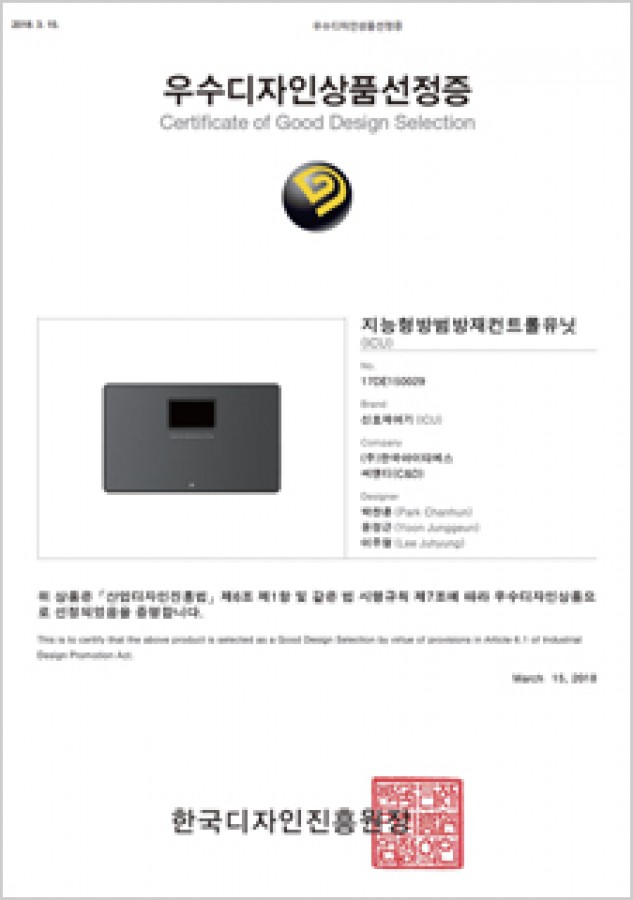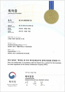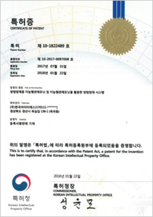 특허증 (방범방재용 지능형관제유닛 및 지능형관제유닛을 확용한 방범방재시스템)