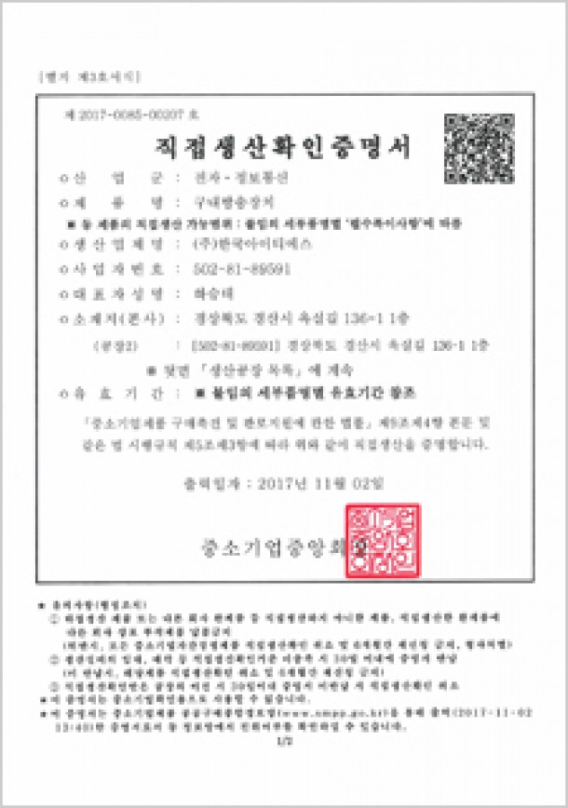 직접생산확인증명서 (폐쇄회로 텔레비젼시스템)