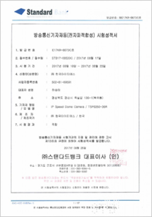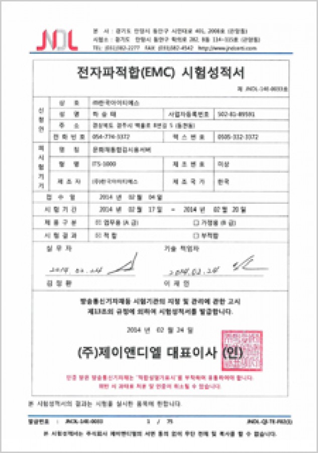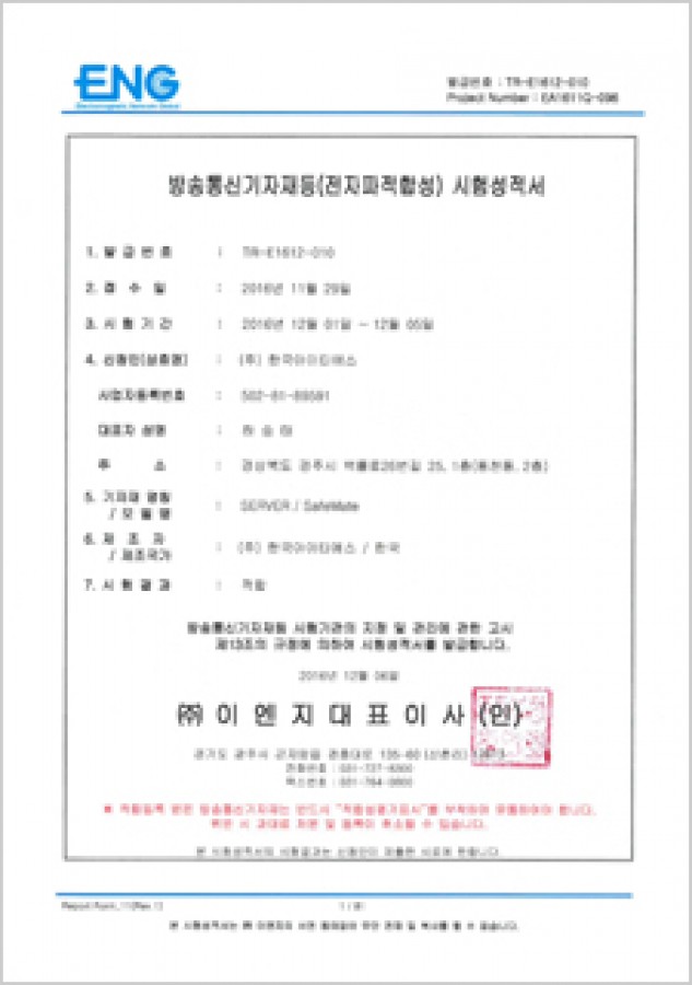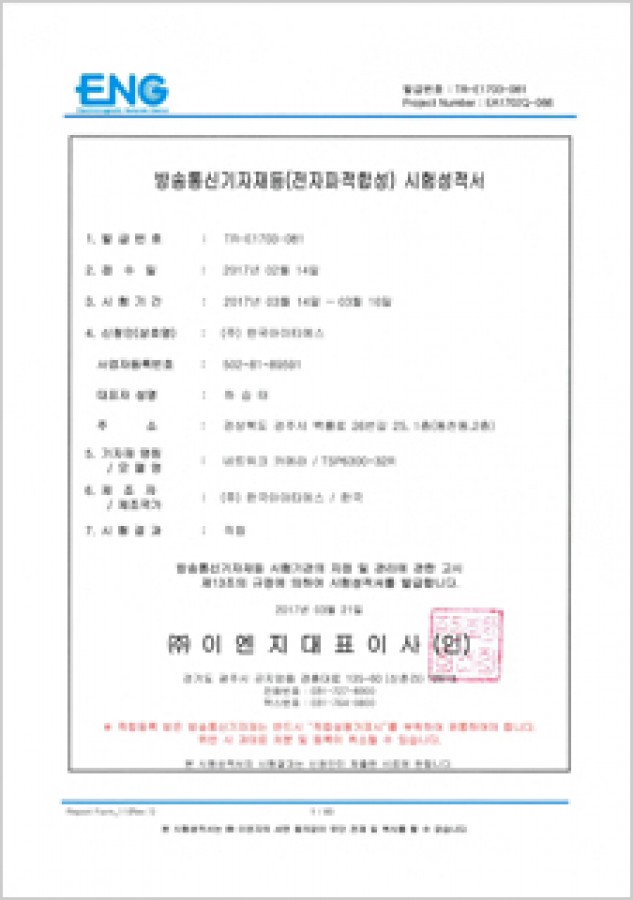방송통신기자재등전자파적합성 시험성적서
