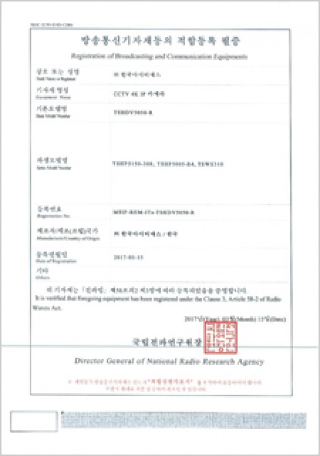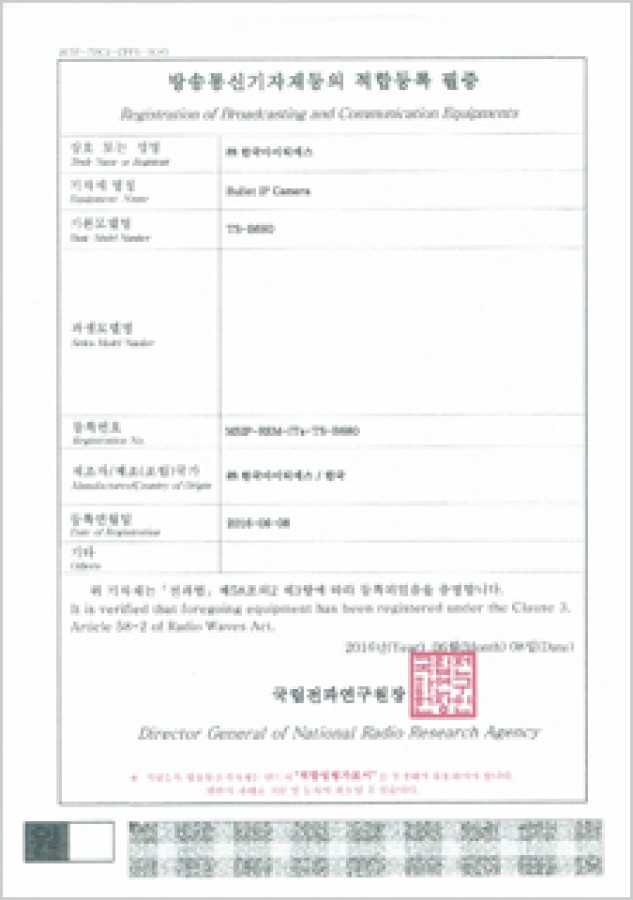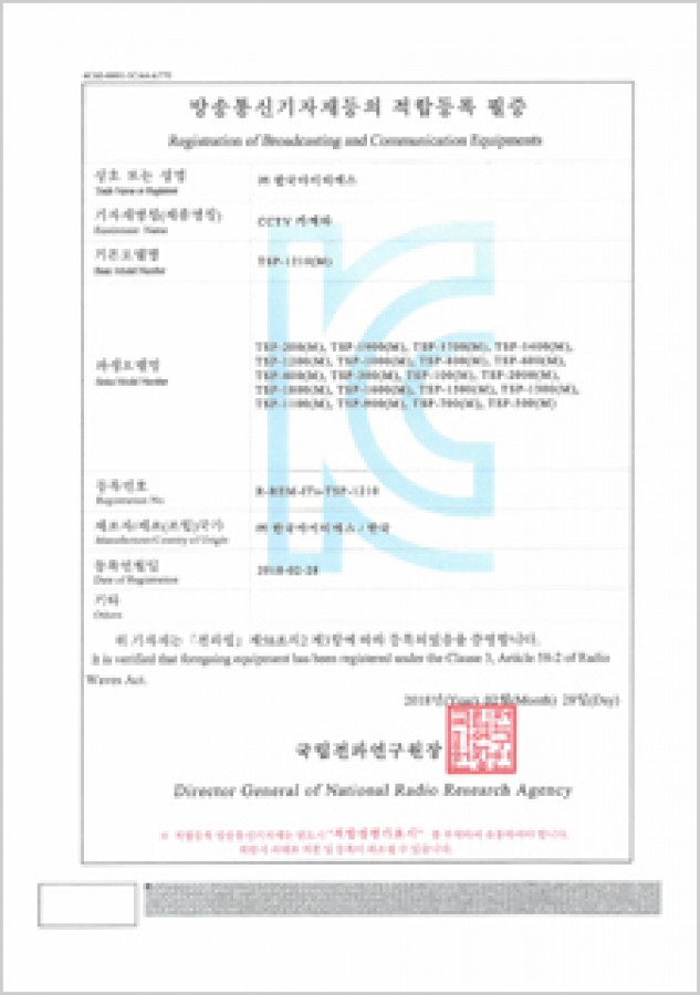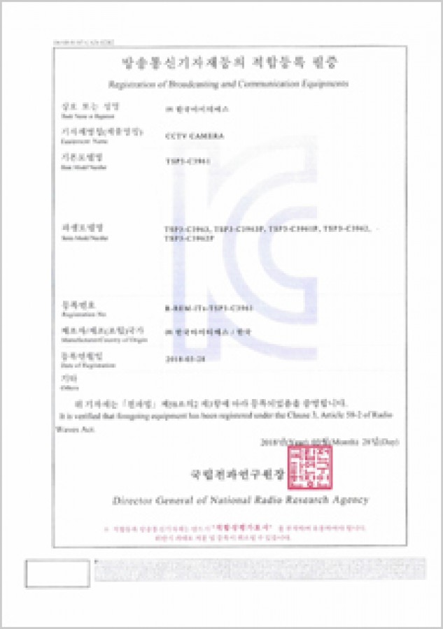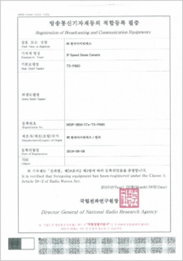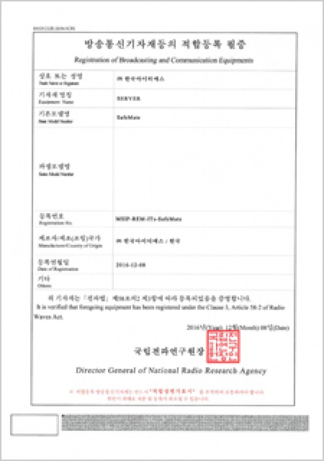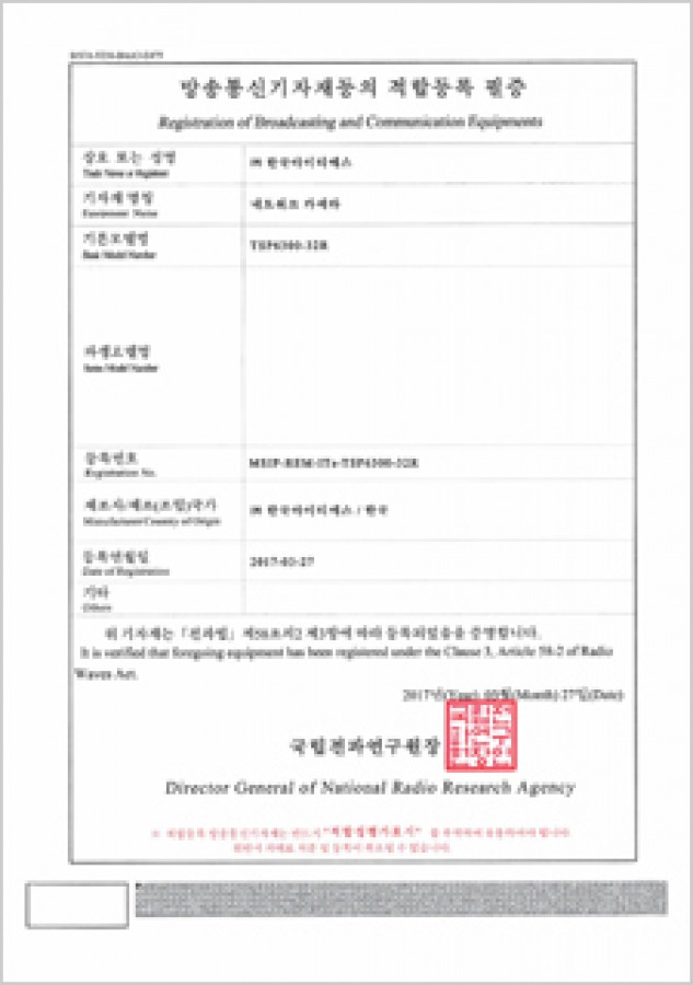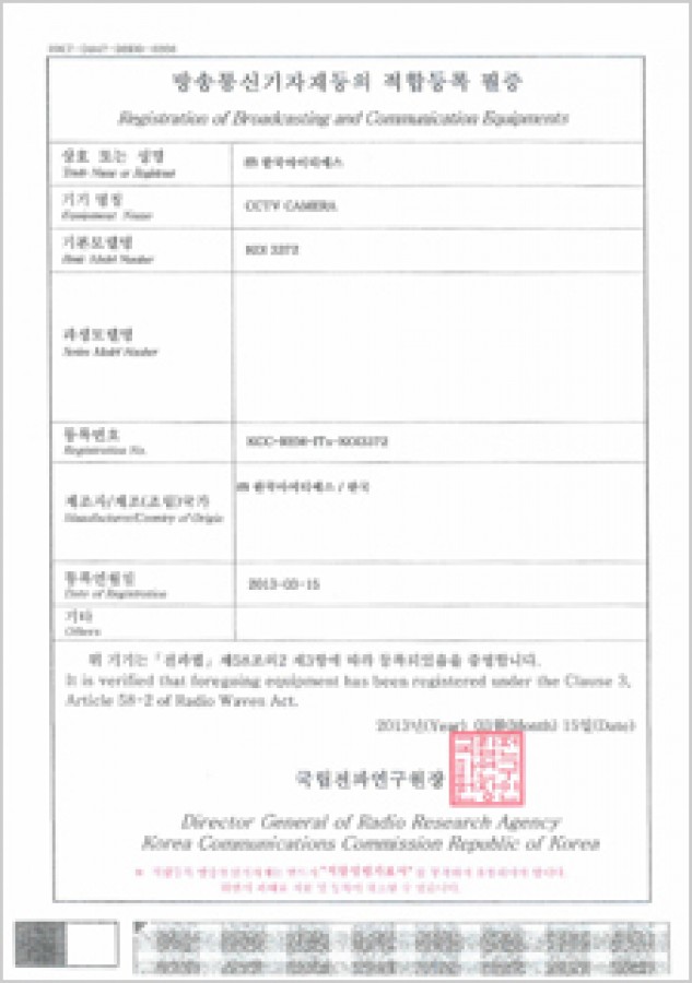 방송통신기자재등의 적합등록 필증