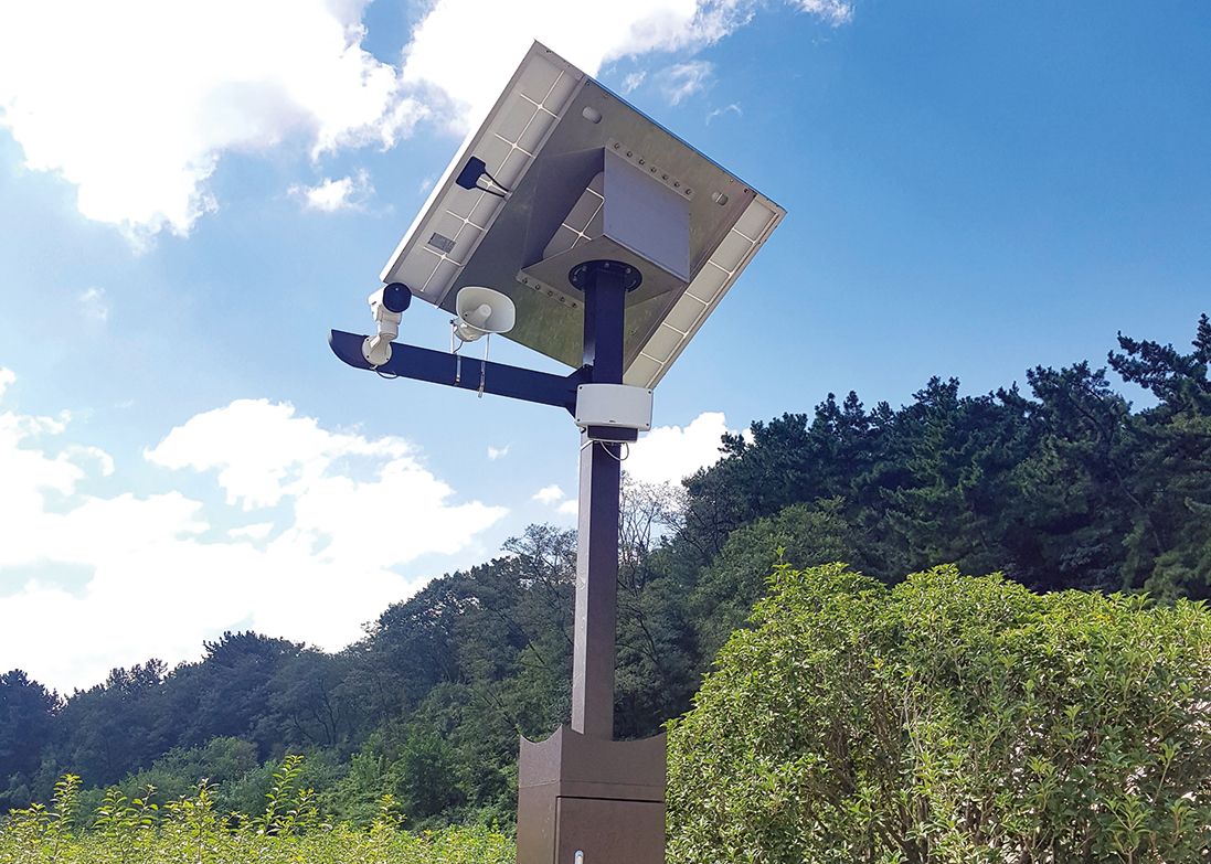 태양열 발전을 이용하여 작동하며 부조일은 10일 유지되고 레이더를 통한 감지 및 다양한 안내 방송, 실시간 CCTV를 이용한 영상 감시, 무선 통신을 이용한 영상 전송 및 알림이 가능합니다.